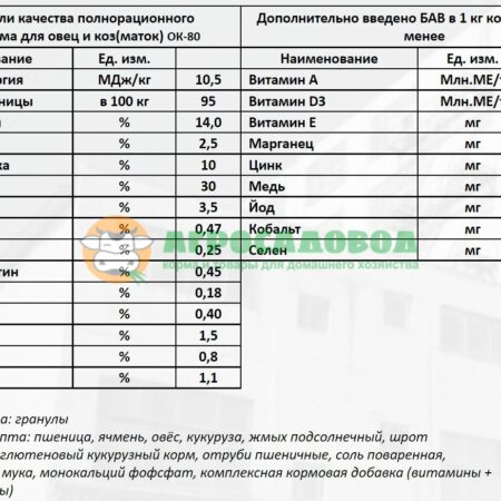 Комбикорм ОК-80 для коз и овец (мешок 30 кг) «Истра-хлебопродукт»